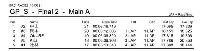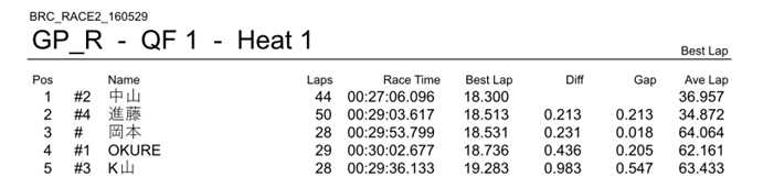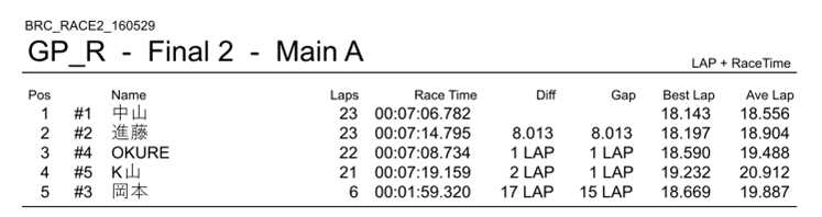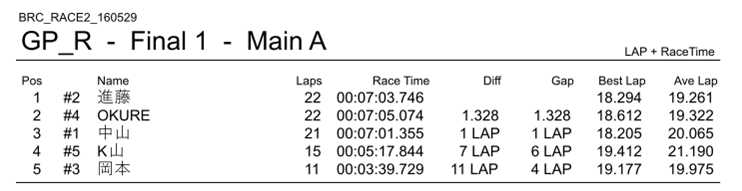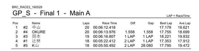 BRC定例レース第2回 結果